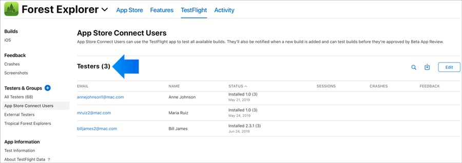 3.在侧边栏的“测试员和群组”下方,点按“App Store Connect 用户”。